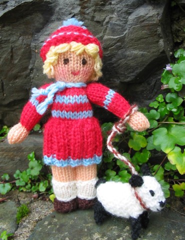 Here is my knitted Bo-Peep in her warm woolly clothing. Oh dear! She appears to have lost her sheep yet again. He's a rascally little fellow so perhaps we'd better look for him.