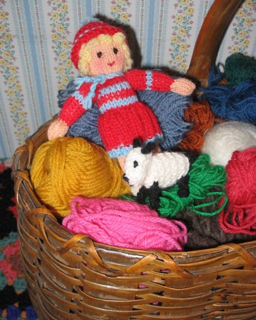 On my desk this Wednesday is a basket of knitting yarn and a tiny doll I've knitted together with her sheep. I've named her Little Bo-Peep and she will be looking for a new home with one of the nice people who visit my blog. Bo Peep and her sheep will be my 'givaway prize' at the end of this post.