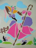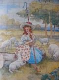 Delighted to have found him, Bo-Peep has decided to keep her sheep on a lead; though looking at the mischievous expression on the animal's face it won't be long before he finds a way to go exploring yet again.