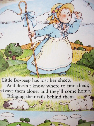 I found nine pictures of Little Bo-Peep in various nursery rhyme books but not a single one is suitably dressed for 21st century farming.