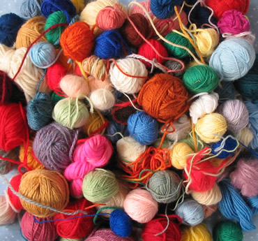 Nothing is wasted and I always squirrel away the smallest lengths of yarn. I'm particularly fond of odd balls like these. Dozens of different colours which provide dozens of different knitting possibilities. Here are just a few examples that I can show you.