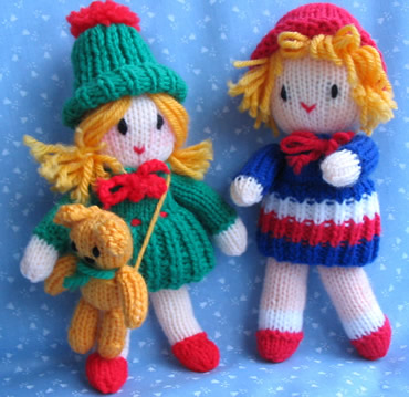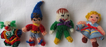 From very large to very tiny. These knitted toys are for a dolls house and measure 4 cm (just over an inch). The arms and legs only required 4 stitches. I used my finest yarn (4 ply) and and my finest needles. Fiddly but fun!
