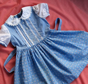 Mum hated parting with the little dresses she'd lovingly made for us. Here is a cutie she made for my sister when she was two. Many years later my daughter delighted in wearing it. Needless to say it's been laundered many times but is still as pretty as ever.