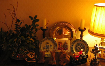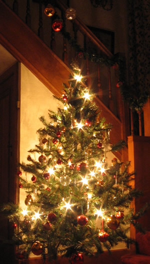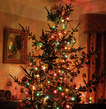 Reflected in the mirror over the mantle the tree looks quite small but I can assure you it isn't!! We are keeping it well watered in the hope that we get minimum needle drop.