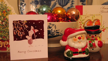 And here, feeling very at home on the tree, is the gorgeous Santa sent from my blogging chum Suzanne at Blueberry Cottage in Massachusetts. Isn't he wonderful... I love him.