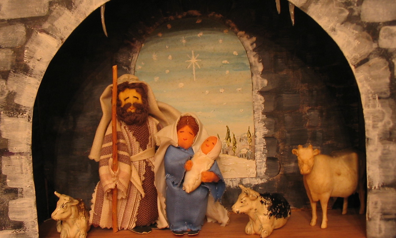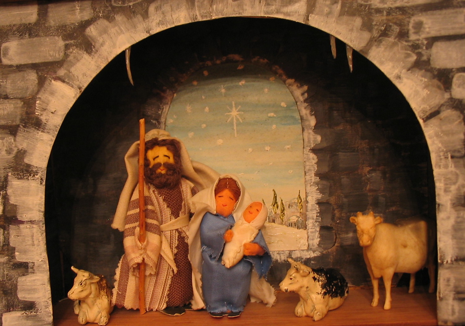 And in the alcove below sit the nativity figures that I made the year I was married (shepherds and kings stand either side) .