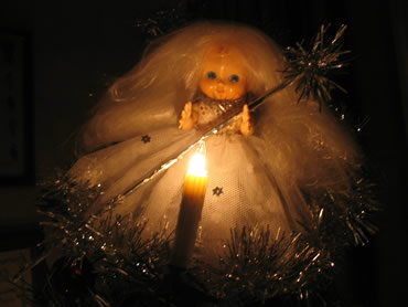 This year we cut a Christmas tree from the garden. It was completely overshadowing the rhododendrons so it had to come down and it was enormous. Unfortunately quite a bit had to be removed from the top and my daughter thinks the poor fairy looks as if she is perched in a crow's nest. I have to say it is one of the nicest trees I have ever trimmed. The branches are thick and strong and readily hold even the heaviest baubles.