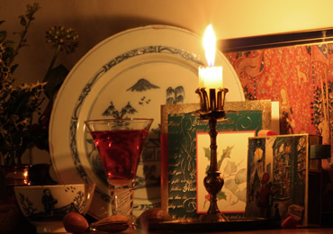 Christmas is a time of excess and I like to group vintage items that will glow in the candlelight on the dining room mantle.