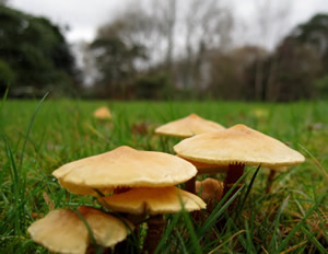 Sheep graze happily beside the road ignoring passing cars. But when a car stops and someone tries to take a photograph of the woolly beasts they immediately take fright.