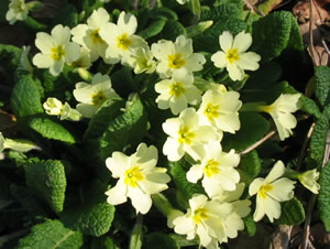 Primroses grow everywhere in the garden. They thrive in damp places so are spoilt for choice in our wet climate. They love to nestle at the base of stone walls or on mossy banks.
