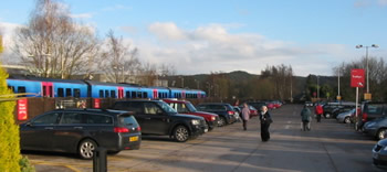 And after a short car journey we arrive at the supermarket where I do my weekly shop. Booths is a family firm with a number of stores in north west England. It is of course in direct competition with the big multiples that dominate the British market but despite this is doing rather well; and long may it do so. The supermarket building was once a Victorian station and engine sheds. The buildings were converted in the early 1980s to create a large modern food hall. The current station is now to the left of the car park behind a tall fence....