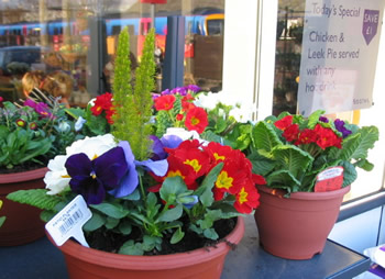Here we are at the store. I'll leave you outside admiring the pots of brightly coloured polyanthus that are on sale whilst I go inside to pick up a few essentials.