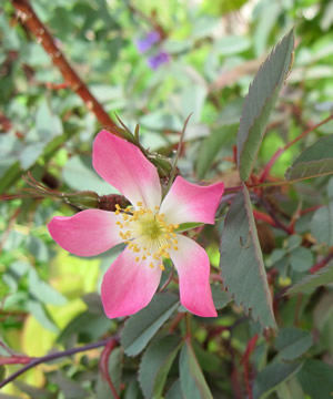 The first candidate will be this delicate little rose with gorgeous red stems and pinkish grey leaves. I planted it a couple of years ago in front of the dining room window not realising how tall and bushy it would become.