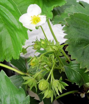 As the sun popped out from behind the clouds I couldn't resist visiting my strawberry plants which I'm pleased to say are all doing well. I usually have them in the veg patch but this year they're in pots beside the garden room door which will enable me to pop outside and pick a few whatever the weather.