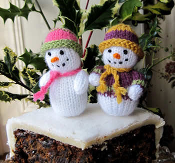 I thought I would end the old year and start the new one with a 'free' knitting pattern. A couple of days before Christmas I decided that my traditional cake decorations (that I use every year) were looking a bit tired and so I decided to knit some little snowmen.