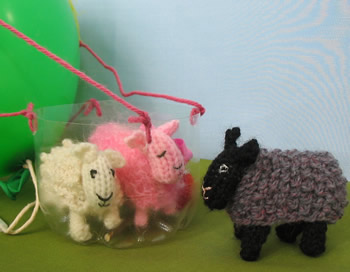 After collecting their belongings the woolly threesome found a colourful woolly trail and decided to follow it. On and on and on it went. They were just beginning to think the trail would never end when round the corner they were greeted by a fluffy old ram who was standing amidst a tangled heap of colourful wool.