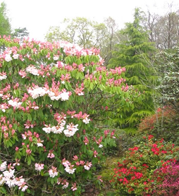 And this is his view in the other direction. The large pink rhododendron is 'Rhododendron Loderi '. I can't begin to describe what a wonderful perfume it has. If you are considering buying just one rhododendron do please consider this one. There are several named Loderi cultivars and they are all strongly scented.