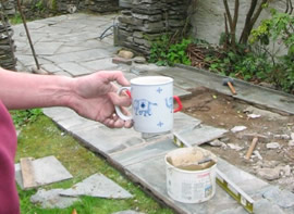And here is the reason...yet another path is being dug up and relayed. As you may know my husband enjoys 'fixing' paths and walls so this little project has kept him busy all week. The stone slabs had become very uneven so his hard work is much appreciated and he's doing a very good job.