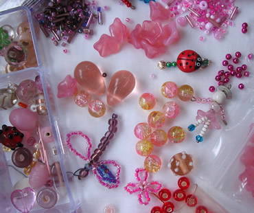 I don't think think I've mentioned my beads before. I keep them in a small chest of drawers with different shades of bead in each drawer. This is supposed to make them quick and easy to find but this system relies on the user returning the beads to the correct drawer and when the user is me...well enough said! Above you can see a few beads from my 'pink drawer' and perhaps spot one or two strays that have found their way in. This week I decided it was time I organised my beads and hopefully find the tiny black ones whilst doing it.