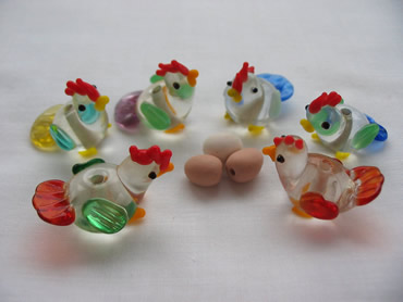 Look at these hens. I love their colours and the expressions on their faces. I made the tiny egg beads to go with them and can just imagine the bossy mother hen clucking "which one of you silly hens laid your eggs here?" The little one (back left) looks to be the guilty party wouldn't you say .